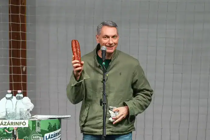 Az elmúlt hetek hangos, olykor botrányos Lázárinfói után meglepően csendes, békés hangulatú fórumot tartott Battonyán Lázár János. Nem voltak ellentüntetők, nem volt kiabálás, a sportcsarnokban felállított iskolapadokon főleg idősebb helyiek ültek, akik figyelmesen hallgatták a minisztert. Lázár a megszokott, erős kijelentéseket ezúttal is hozta, de a színpad körüli légkör mégis inkább falunapi nyugalmat idézett. A fórum egyik emlékezetes kelléke a kolbász volt, amelyet a miniszter egy ponton trófeaként emelt a magasba, és „nyugtatóként” emlegetett. A politikai üzenetek azonban így is világosak voltak: Lázár szerint a magyar mezőgazdaság és a vidéki termelők helyzetén csak radikális beavatkozással lehet változtatni, és a következő ciklusban kifejezetten a kiskereskedelmi láncok átszervezését, illetve a „pénz útjának” feltérképezését ígérte.